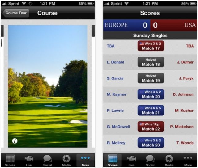 The app also provides access to team and player biographies, course tours with photographs and flyovers, and access to Facebook and Twitter fan chat.